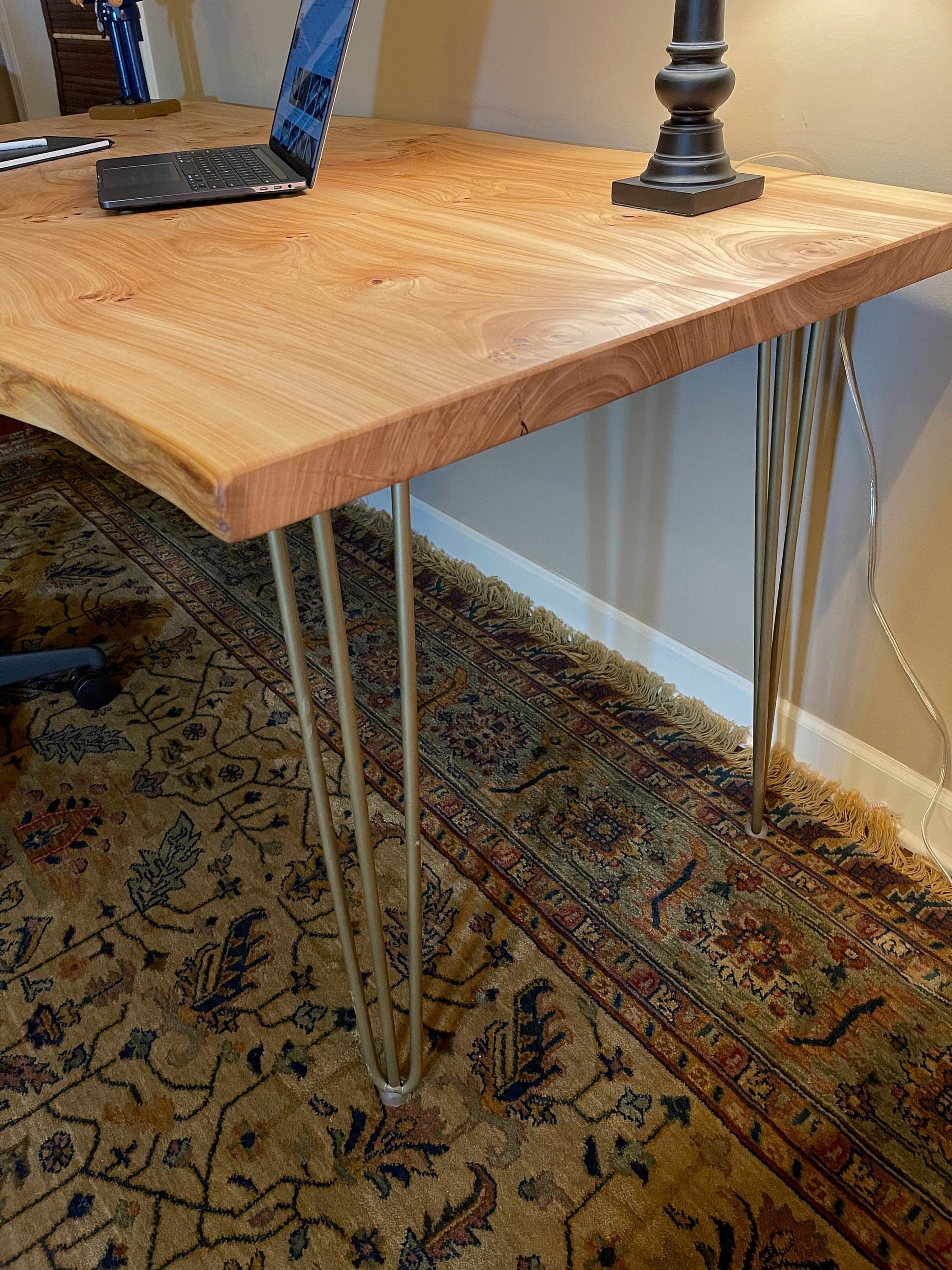 The pictures listed are an example of a finished custom table. Your table will be similar; however, each piece of wood is unique and different in its own way. So, no two tables made from natural wood will be the same. Variations are to be expected. Each table comes with a set of hairpin legs or tube black metal legs to give the coffee table the Mid Century Modern look.